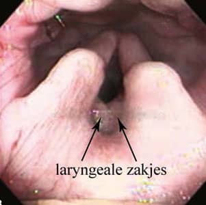 De laryngeale zakjes bevinden zich vlak voor de stembanden. Als gevolg van de onderdruk in de keel door het moeilijke ademhalen, kunnen deze zakjes gaan uitpuilen (eversie). Doordat de zakjes naar binnen toe in het strottenhoofd uitpuilen, raakt het strottenhoofd nog meer vernauwd, wat het ademhalen nog moeilijker maakt. Door tijdig de neusgaten en het zachte gehemelte te corrigeren kan het uitpuilen van de laryngeale zakjes voorkomen worden.