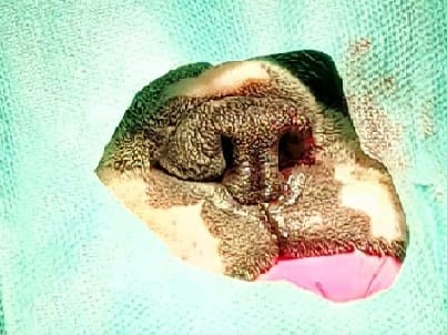 Het linker neusgat is gecorrigeerd (voor kijkers rechts) en rechter moet nog gebeuren