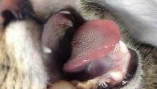Dit is Lucy, een jonge dame uit Lemelerveld. Gisteravond leek het haar wel leuk om met de speldenkussen te spelen van haar baasje. De eigenaar zag dat ze een hele speld had ingeslikt. Daarna begon het kokhalzen en gek doen. Nu komen de meeste ingeslikte naalden gelukkig ergens in de keelholte terecht. Dus eerst maar eens in het mondje gekeken. Dit liet Lucy onvoorstelbaar goed toe en daar zag ik net de naald 1mm door de tong heen steken. Mondje voorzichtig weer dicht gedaan, injectie narcose en de naald met een tangetje verwijderd. Vandaag is ze weer lekker speels en gaat ze weer naar huis. En de naaldenkussen zit weer in de naaidoos. Is geen kattenspeelgoed.