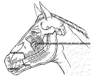 De tanden en kiezen van een paard groeien het grootste deel van hun leven en blijven altijd met 2-3 millimeter per jaar doorkomen. De zeer harde kiezen verkleinen het harde hooi, door als molenstenen alles wat er tussenkomt te vermalen. De kiezen die over elkaar schuren, slijten hierdoor zelf ook af.