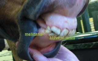 Middelste twee snijtanden: tussen 2,5 en 3 jaar