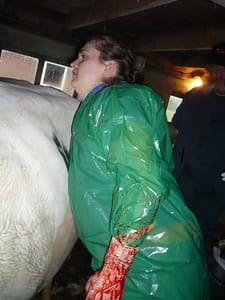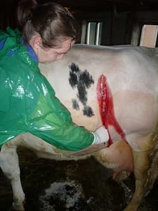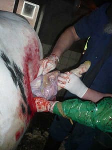 Het kalf bevindt zich nog helemaal in de baarmoeder en moet soms bijgedraaid worden. Wanneer de pootjes richting de buiksnede liggen kan de echte “verlossing” beginnen.